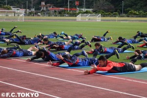 Bei strahlendem Sonnenschein schwitzten die Spieler beim Joggen und beendeten damit das Trainingslager in Kunigami, Okinawa.