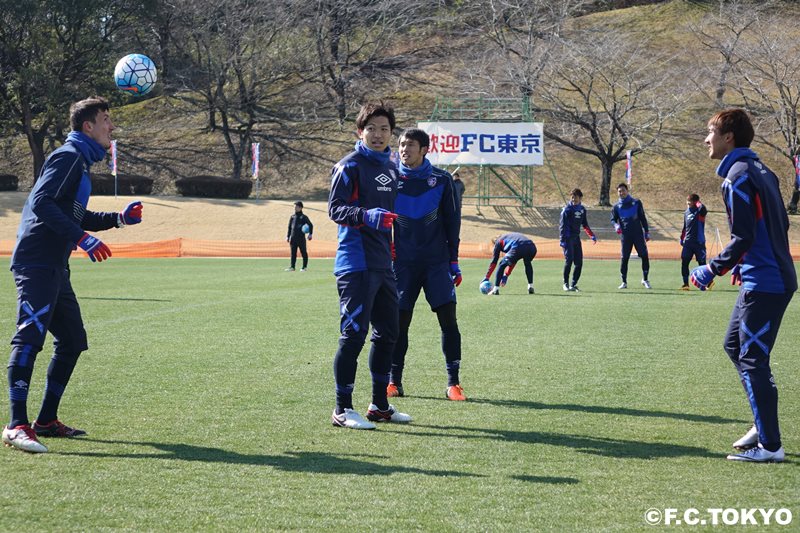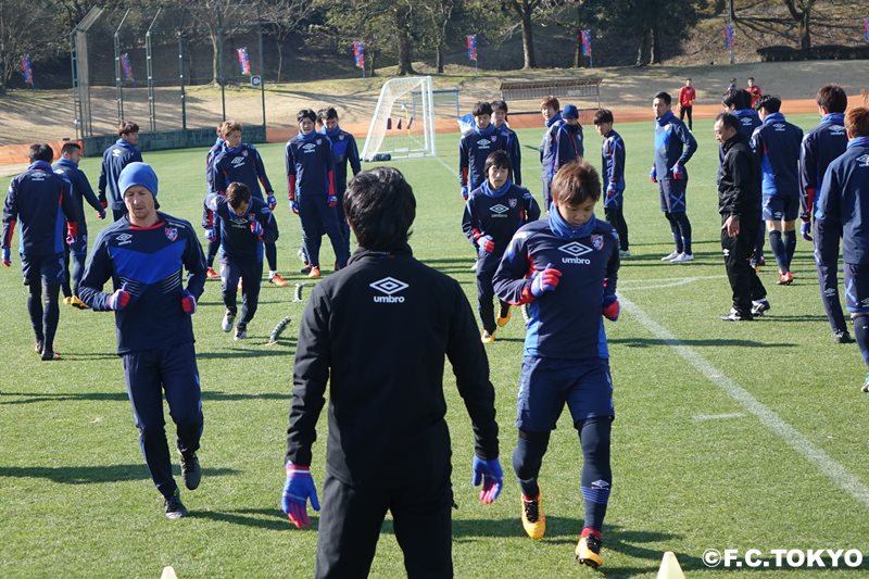 Wie bereits gestern bereitet sich das Team bei sehr kaltem Wind auf das Spiel vor, indem es die Taktik überprüft und Schussübungen durchführt, um sich auf das morgige Testspiel gegen Okayama vorzubereiten.