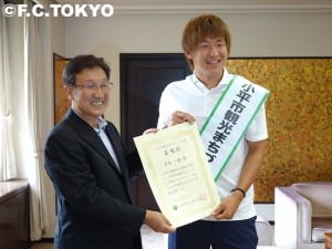 Hiermit möchten wir bekannt geben, dass Kazunori YOSHIMOTO von FC Tokyo zum "Tourismus- und Stadtentwicklungsbotschafter" der Stadt Kodaira ernannt wurde.