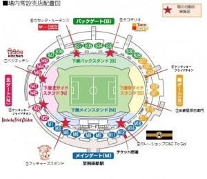 Folgende Verkaufsstände im Innenbereich des Ajinomoto Stadium auf der Concourse-Ebene
