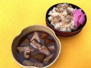 (4) Fukagawa-Meshi & Edo-Miso Innereien-Eintopf Set・・・800 Yen Ein Set bestehend aus dem Edo-Spezialgericht „Fukagawa-Meshi“, das frische Venusmuscheln der Saison verwendet, und einem leckeren Innereien-Eintopf mit Edo-Miso. |