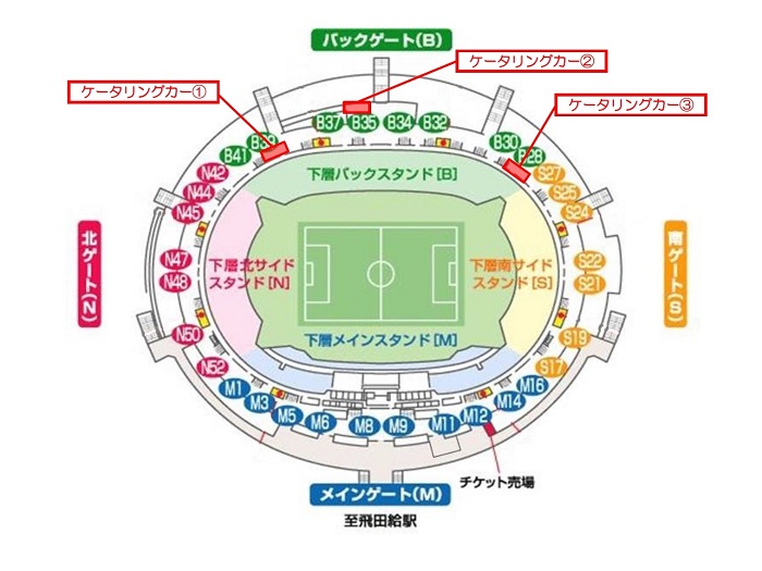Wenn bis zum Mittag des Tages vor dem Spiel basierend auf Wettervorhersagen und anderen Informationen ein „Regentag“ festgestellt wird, wird die Durchführung der Serviceleistungen auf der Homepage des Ajinomoto Stadiums sowie auf dieser Homepage bekannt gegeben.