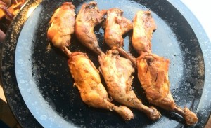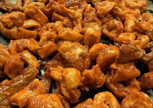 (8) Geräuchertes Hähnchen・・・500 Yen Geräuchertes Hähnchen, zubereitet mit dem Salz „Umi no Sei Trocken-Salz“ und der „Frisch gepressten Sojasauce“ der Tokyo E-Marke. |