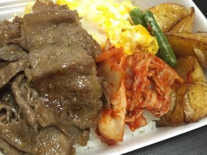 (4) Selten! Akikawa-Rind Yakiniku-Schüssel・・・1.200 Yen Exzellent! Zart marmorierte Kalbi vom Fluss-Rind, köstlich gegrillt mit spezieller Sauce serviert. |