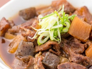 (3) Geschmorte Rindersehnen vom Akikawa-Rind ... 500 Yen Die Rindersehnen werden sorgfältig nach Teilstücken des A5-Rangs Wagyu-Rinds sortiert und über lange Zeit langsam geschmort – ein wahrer Genuss! |
