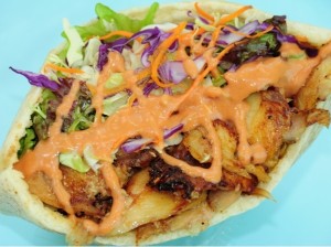 (6) Koji-Kebab-Sandwich... 650 Yen Original-Kebab mit Shio-Koji in der Sauce. Saftig gegrillt mit spezieller Sauce. Lecker im Brot oder einfach nur mit Fleisch und Gemüse genießen! |