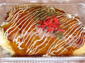 (9)Hiroshima-Okonomiyaki・・・650 Yen Ein Okonomiyaki mit viel Kohl und vollem Volumen. Als geheime Zutat wird Edo-Süßmiso verwendet. |