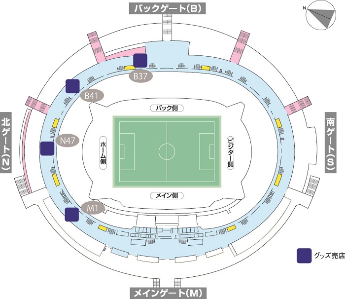 ※Die Fanartikel-Verkaufsstände im Stadion sind hier