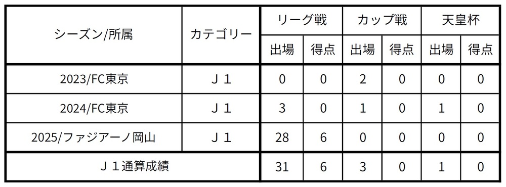 * Von Februar bis August 2023 spielte er als Spieler der zweiten Mannschaft von FC Tokyo. Ab August gehört er zum Erstligateam.