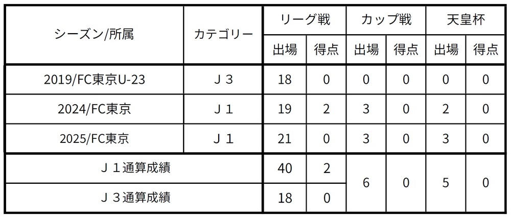 * In der Saison 2019 spielte er als Spieler mit zweiter Registrierung bei FC Tokyo