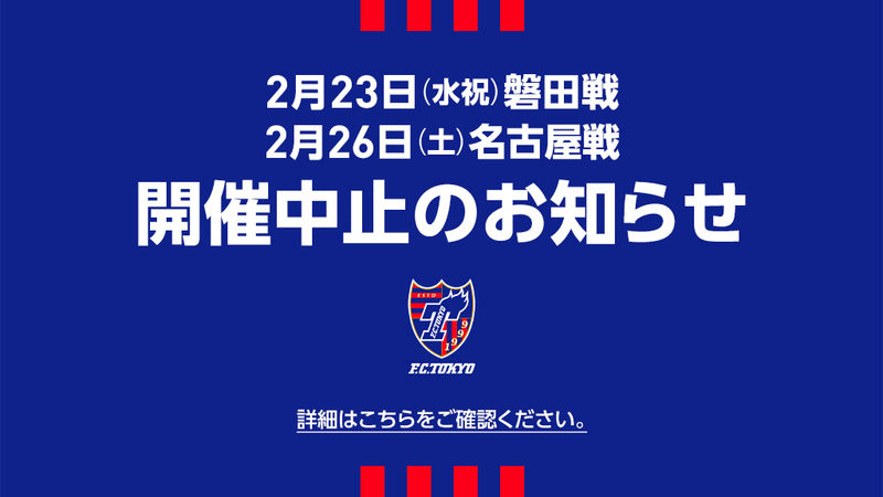 Absage der Spiele gegen Iwata am Mi., 23.02. (Feiertag) und gegen Nagoya am Sa., 26.02.