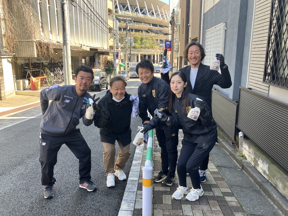 Im Rahmen der Umweltpolitik-Aktivitäten des Bezirks Shibuya, mit denen FC Tokyo seit langem zusammenarbeitet, haben wir gemeinsam mit den Mitgliedern der „Sendagaya Ōdōri Einkaufsstraße“, die neben der Japan National Stadium und der Sendagaya-Schule liegt, Graffiti in der Stadt entfernt!