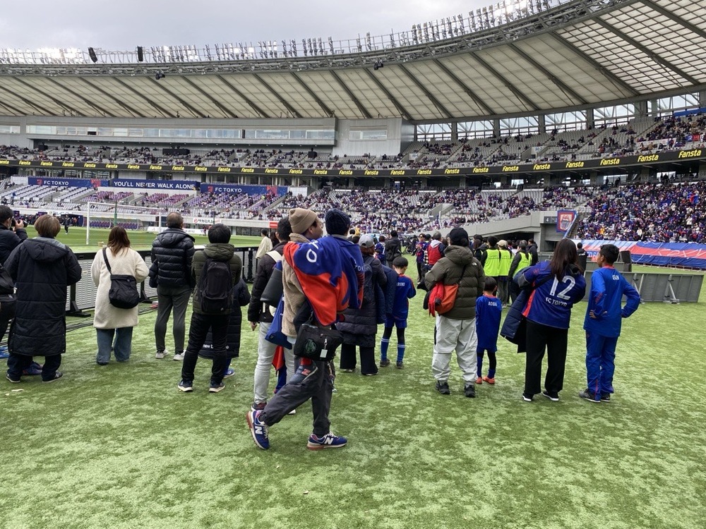 Während der Beobachtung des Aufwärmens vergaßen die Schüler die Kälte, feuerten die Spieler leidenschaftlich an und genossen die Aussicht auf das Ajinomoto Stadium sowie die Atmosphäre im Stadion vom Spielfeldniveau aus.