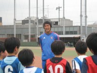「コーチの言うことをよく聞いてがんばって練習すれば、きっとみんなもこの(味スタの)ピッチに立てるぞ!」と激励してくれた藤山選手。そんな優しい藤山選手を「フジヤマー!」と声をそろえて呼びすてにする小学新1年生たち!!(笑)