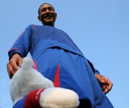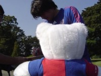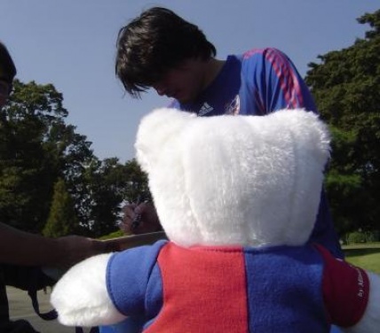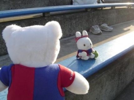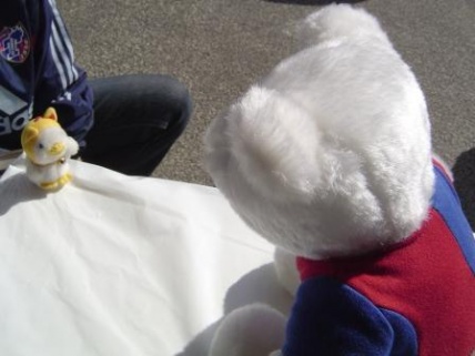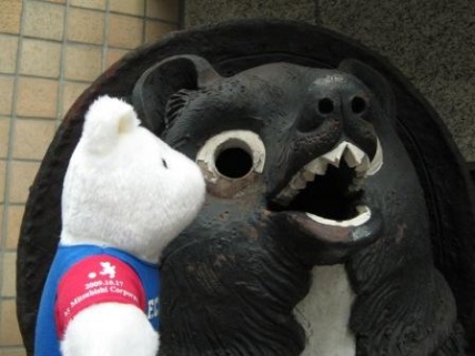 近藤選手:「あれ?白ベア君 何してるの?」