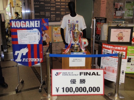 私もさっきまで上井草にいたんですが、FC東京ファンの方や施設利用者の方が次々と、優勝カップの“輝き”に(?)足をとめてくださっていました。