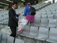 そして11/6(土)対ガンバ戦(3:00pmキックオフ/味スタ)が今シーズン最後の隊員募集となります。味スタに1人でも多くの方に来場してもらうために、試合告知の強化という目的でファンの皆さまに協力をいただいてポスターを貼ってもらっています。本来隊員には郵送等でお届けするべきものではありますが、コスト面を考えて試合会場で配布することにしています。
