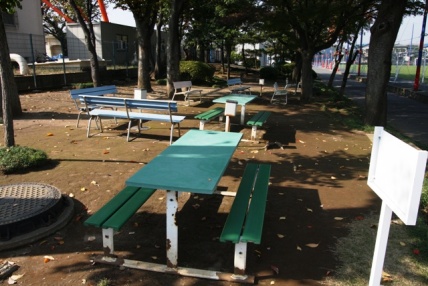 この通路を抜けると、正面に喫煙ができるベンチがいくつも置いてあります。