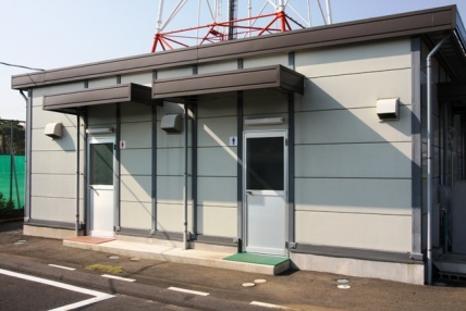 このプレハブの左奥にはお手洗いがありますので、奥のピッチで観覧の際は、こちらのお手洗いをご利用ください。