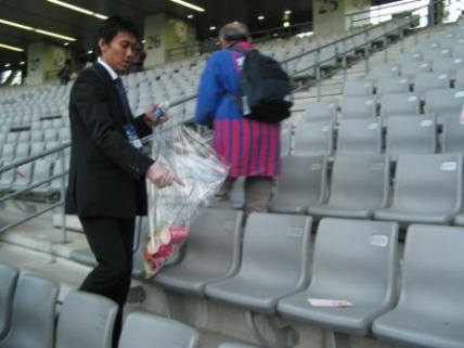ちなみに…この観覧エリアの後ろに倉庫(車庫?)が置いてあるのですが、ここは小平グランドの美しい芝生を整備して下さっているオフィスショウさんの倉庫(とFC東京の倉庫。主にボールや練習道具などなど)です。ここで、豆情報!このオフィスショウいらっしゃる日本国内では珍しい女性グラウンドキーパーの尾崎千春さんが、J:COMの情報番組「ぐーたま」に出演予定(11/7)とのことです! ぜひご覧になってください。