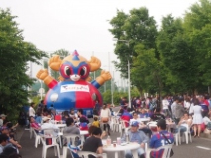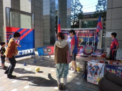 先日、某商店会のイベントに参加させていただきました。あいにく、天候が悪くキックターゲットは中止になりましたが、PR活動は沢山の来場者の皆さんに実施する事が出来ました。その際、PR活動のチラシや会員の申込用紙等を入れて持参した手提げ代わりのワリフバックについて、お子さん連れの若いお母さんから質問を受けました。内容は、「あの手提げ袋、凄く良くてみんなが持ってるので欲しいのですが、グッズ売店やスポーツ店どこを探しても売ってないんですよ。どうしたら手に入りますか」というものでした。私の返事としては、「例年、ENEOS Dayを実施していますが、その際に来場者の方へ先着順にて配布をしております。来年はどの試合で実施か決まってませんが、今年は4月14日のゲーム時に配布しております」と答えましたが、実は私、ENEOSの担当者ですので、担当としては大変嬉しく思ったのと同時に、来年もFC東京ファンの方々に喜んでもらえる企画を考えなければ、という思いが強くなりました。