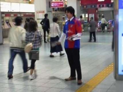 さて、明日は久しぶりのホームゲームです。この試合に向けて、先日フロントスタッフをいくつかのグループに分けて、新宿・渋谷でのチラシ配布を実施しました。たくさんの方が行き来する新宿・渋谷というエリアで、少しでも多くの方にFC東京を知ってもらうために、青赤のユニフォームを着て、声を出してPRしてきました。