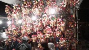 縁起物の熊手が売れると威勢のよいかけ声と拍子木の音が飛び交います。大きな熊手を納めに来た方に「その熊手は昨年どの位の値段がしたのですか?」と(ちょっと失礼かもしれませんが)聞いてみました。「10万円はくだらないよ、まっ縁起物だから」と言って笑っていました。商売繁盛!!