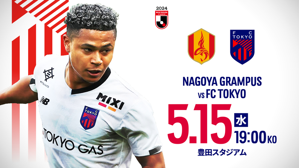 On May 15th, Tokyo will face Nagoya Grampus away on "J-League Day". The team, led by coach Kenta HASEGAWA, includes players Kensuke NAGAI, Takuji YONEMOTO, and Takuya UCHIDA, making it a match against members with deep ties to both blue and red.