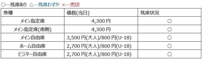 ※Due to the entrance gate, if you wish to purchase tickets for the main designated seats, main general seats, or visitor general seats, please purchase them at the on-site ticket sales office on the main side (near the front entrance). If you wish to purchase tickets for the home general seats, please purchase them at the on-site ticket sales office on the back side (near the east entrance).