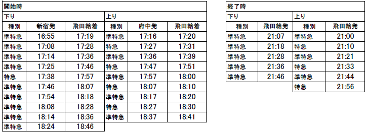 Upbound...Tobitakyu departs at 21:00-21:56 for limited express and semi-limited express/total of 6 trains