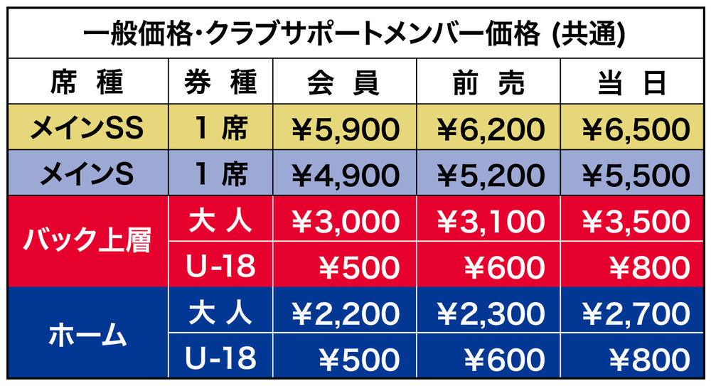 You can purchase up to 4 tickets per Club Support Member membership number (advance sale, ticketing and settlement fees are free). You can purchase until Feb 17 (Mon) 23:59 at the member discount price (on the day of the match, it will be sold at the general sale price).