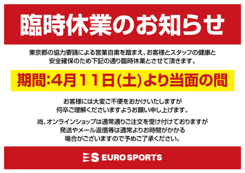 Please note that Euro Sports Online Shop is accepting orders as usual, but shipping and email replies may take longer than usual. Thank you for your understanding.