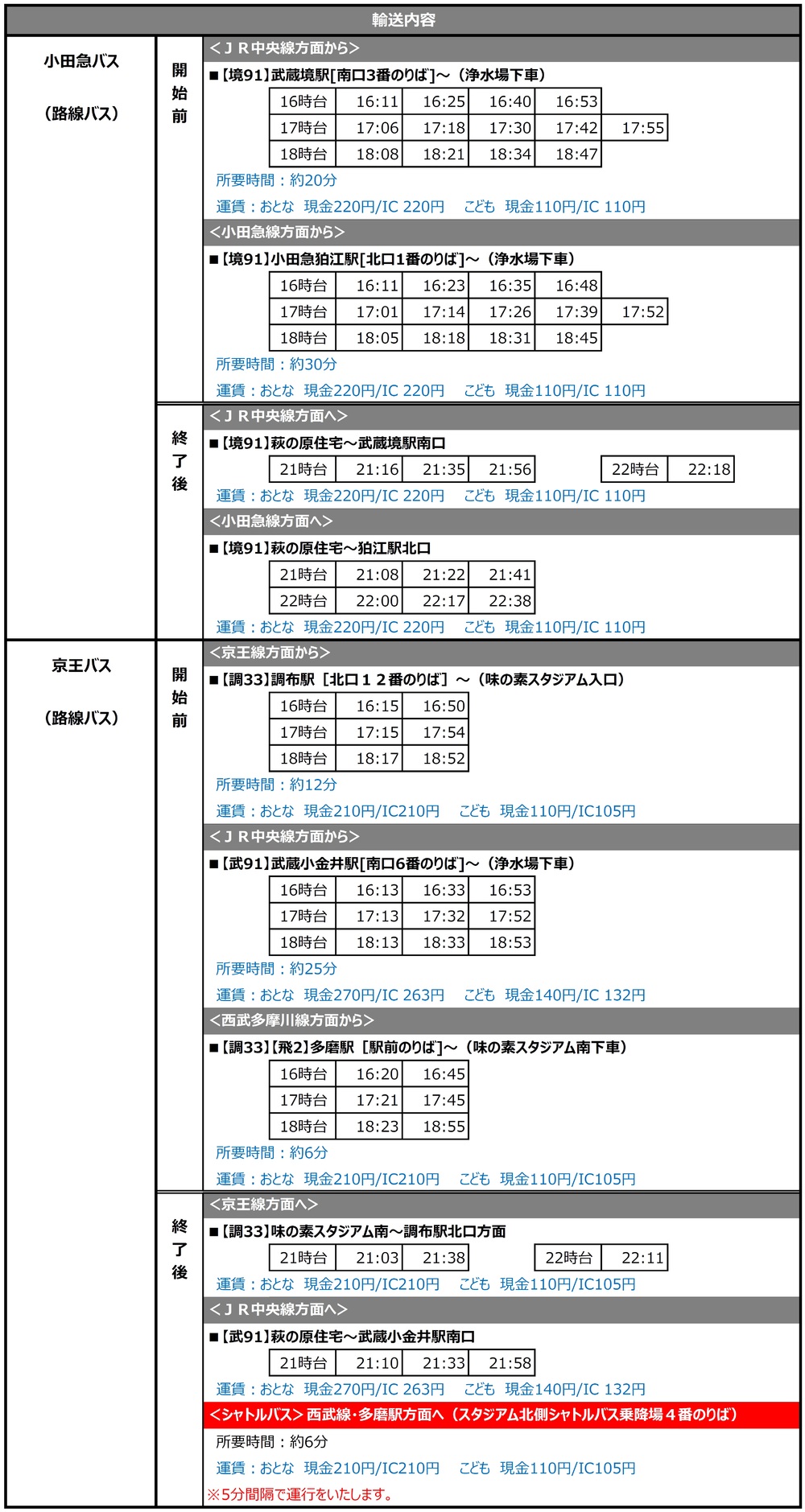 ※The shuttle bus to Tama Station will be operated based on the usage status in this match and future decisions will be made.