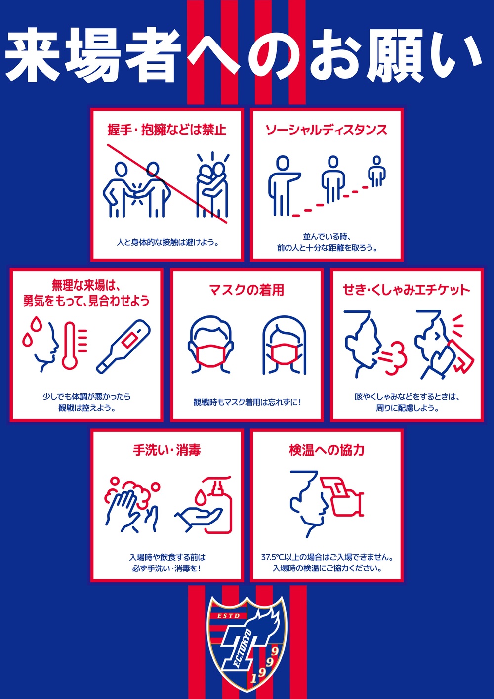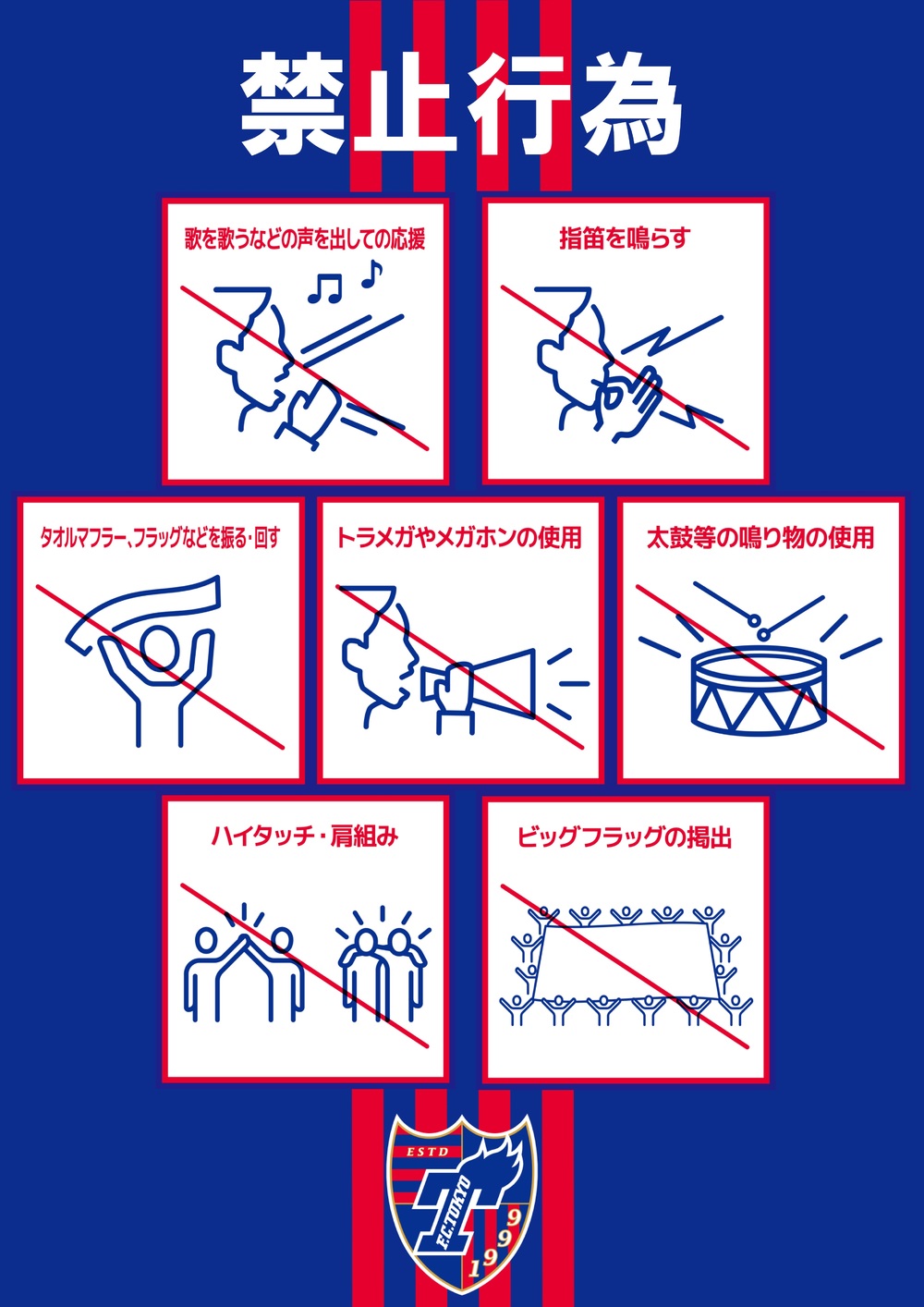 J League Unified Prohibition Rules (J League Common Spectator Etiquette & Rules) and FC Tokyo Soccer Match Management Regulations, as well as J League New Coronavirus Infection Control Guidelines, please comply with them.