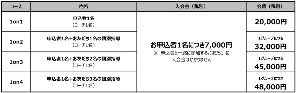 ※After joining, a system will be in place where coaching fees will be incurred for each training session you reserve.