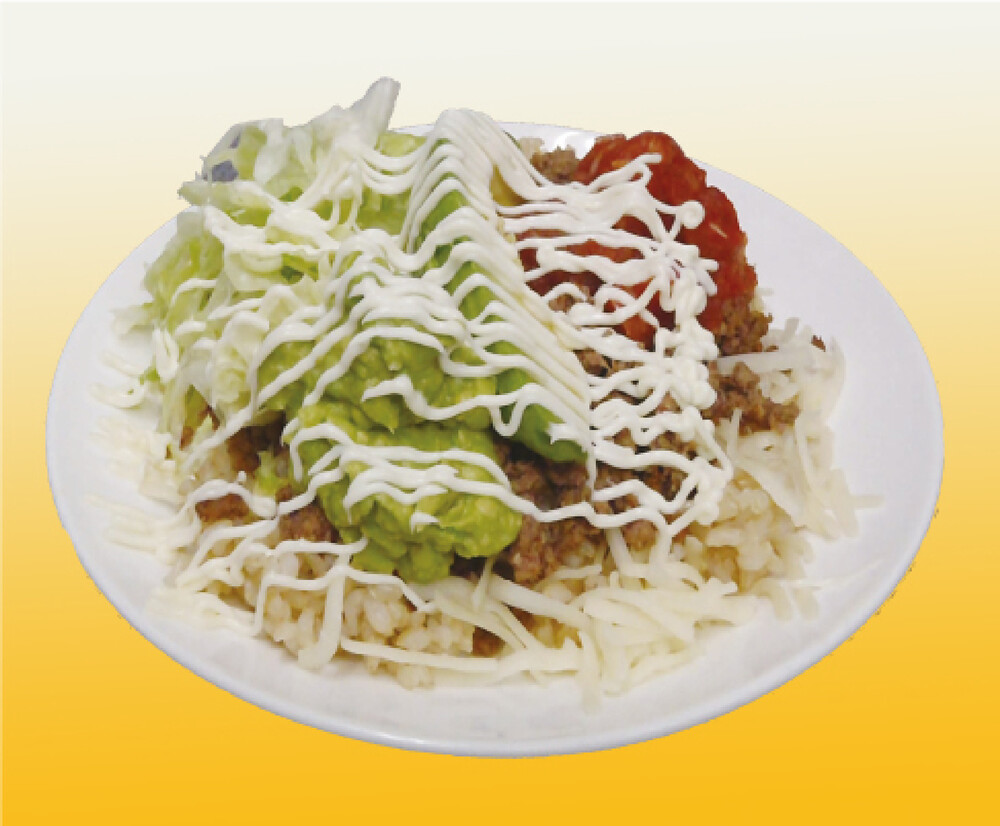 Takorice with freshly crushed avocado on top, made with pesticide-free, non-tillage cultivation brown rice, full of nutrients