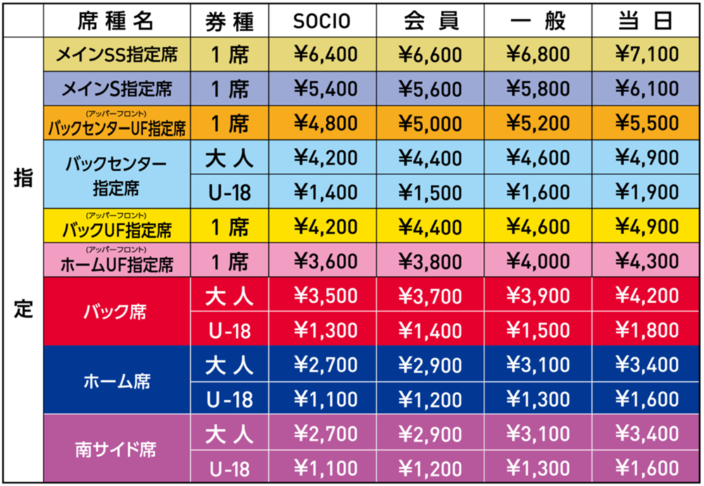 ・Tickets are sold as designated seats for all seats.