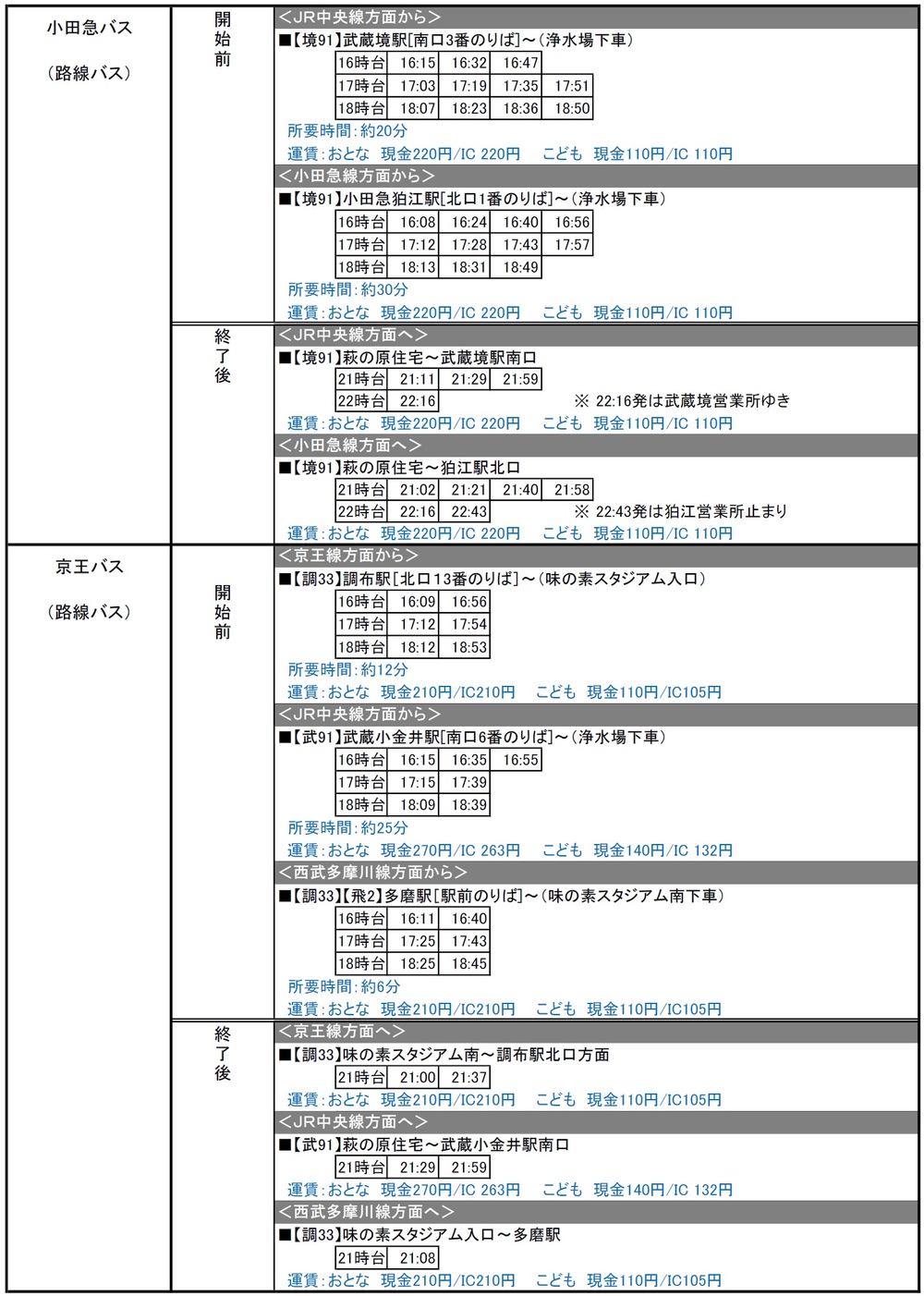 We will provide information about shuttle buses and regular buses operating at the Ajinomoto Stadium on September 12 (Sun), 2021, during the Meiji Yasuda J1 League Sec. 28 match against Kashiwa Reysol (kick-off at 19:00).