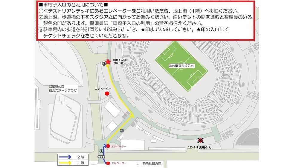Regarding the wheelchair seats, parking spaces for people with disabilities, and magnetic loop seats for the Avispa Fukuoka match on Dec 4 (Sat), the operational methods are as follows. We apologize for any inconvenience and appreciate your understanding and cooperation.