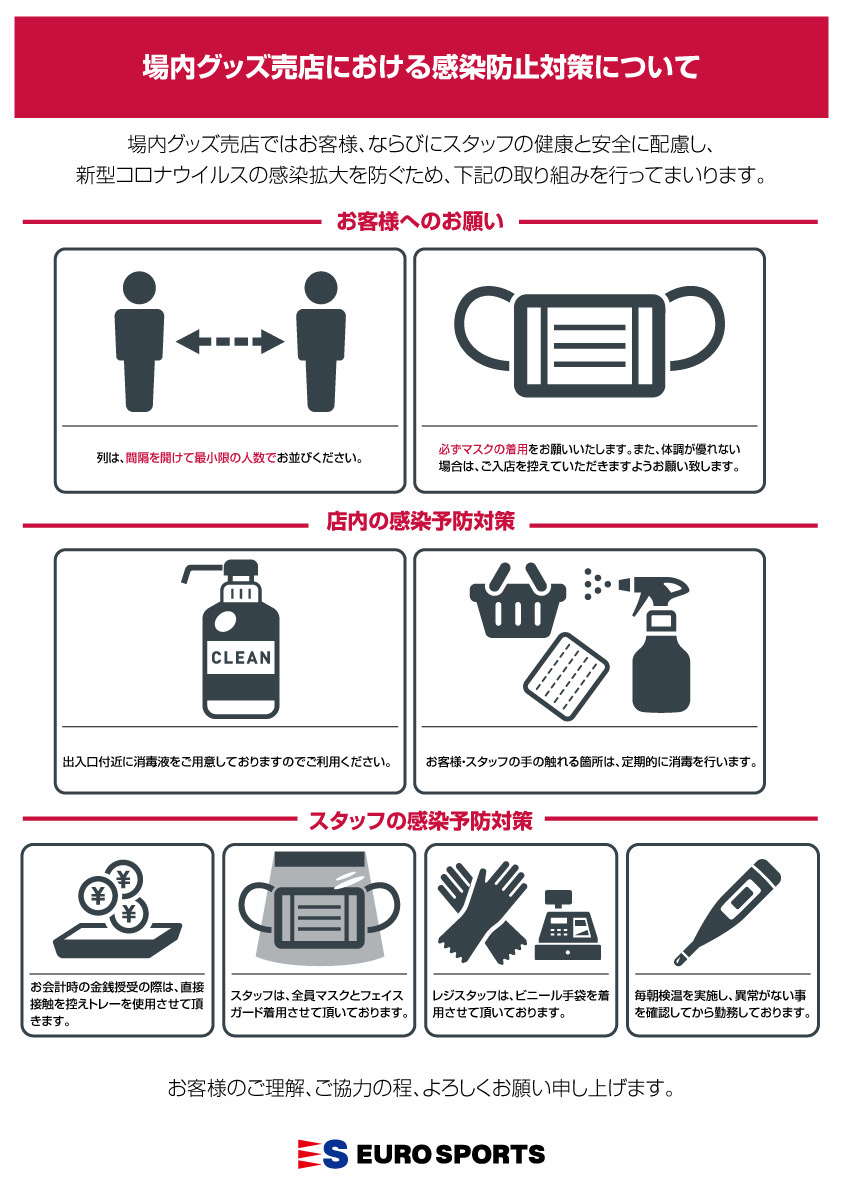 Gate opens (scheduled for 12:00) until 20 minutes after the end of the match ※However, sales will end as soon as each item is sold out.