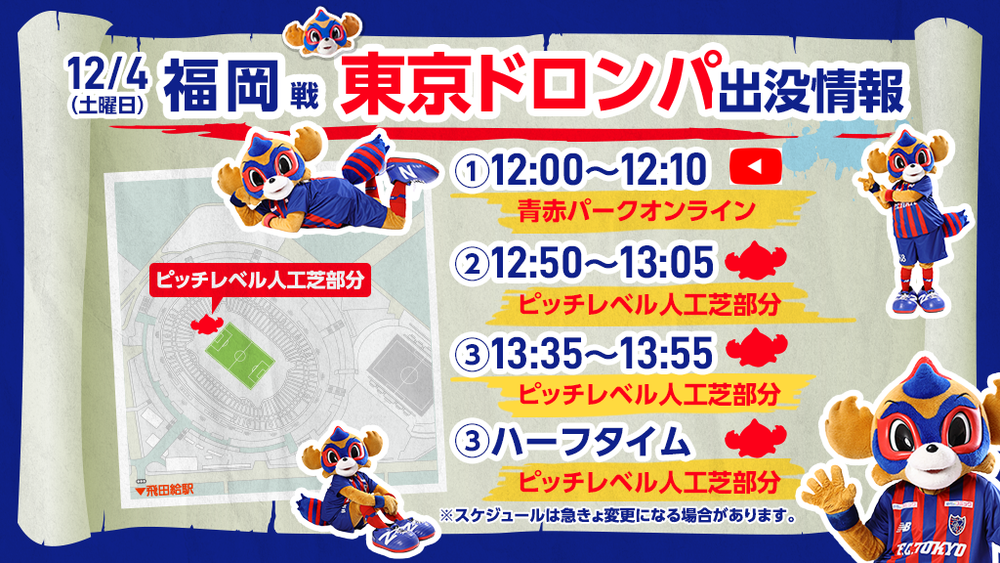 Dec 4 (Sat), 2021 Meiji Yasuda J1 League Sec. 38 vs Avispa Fukuoka (2:00 PM Kickoff/Ajinomoto Stadium), TOKYO DOROMPA will appear as follows.