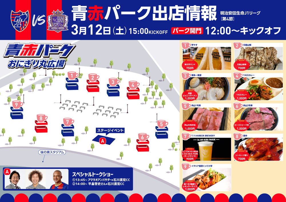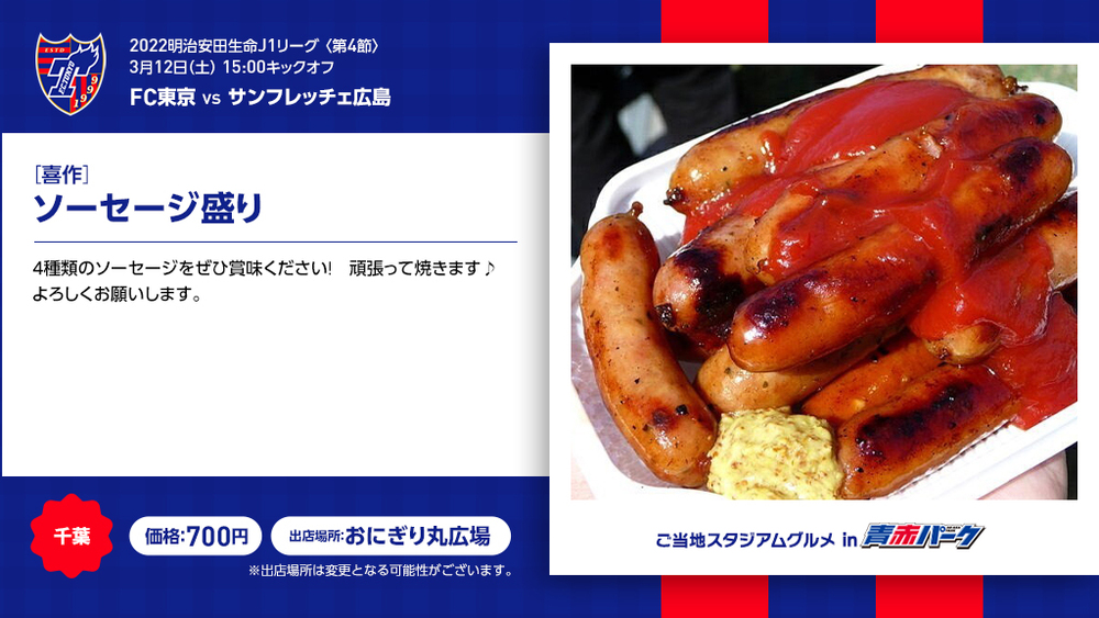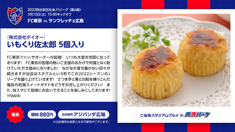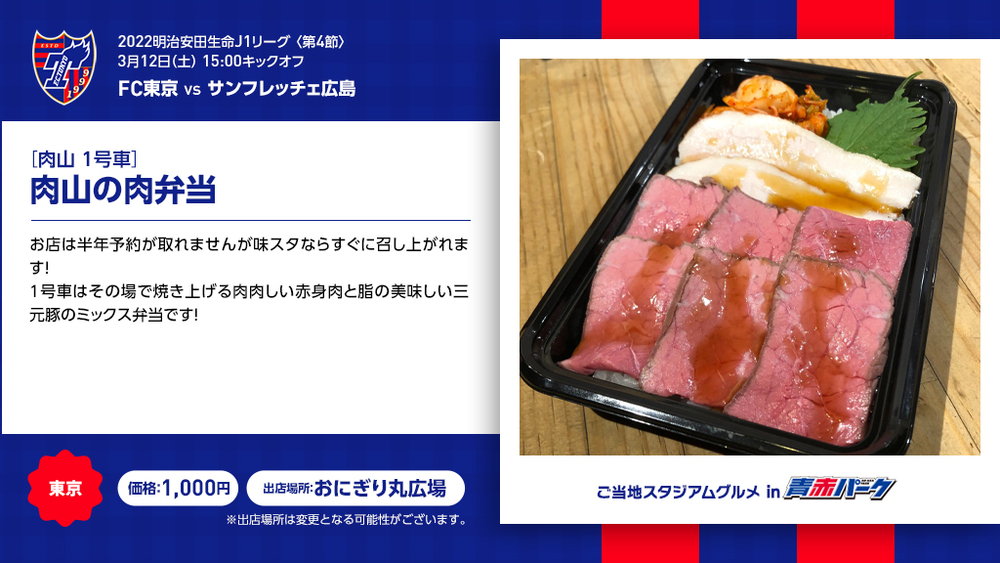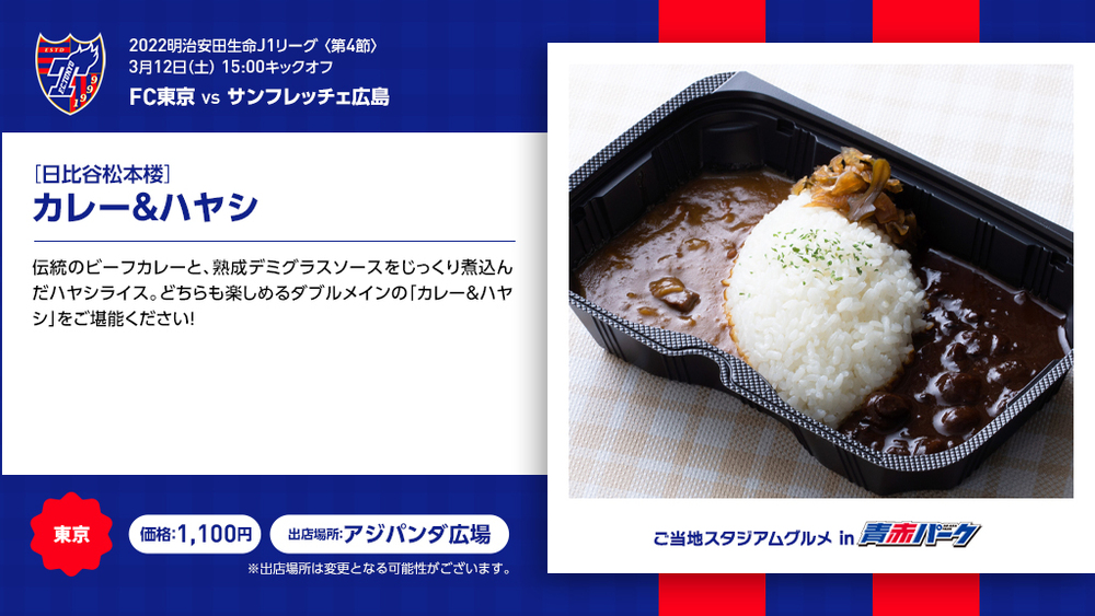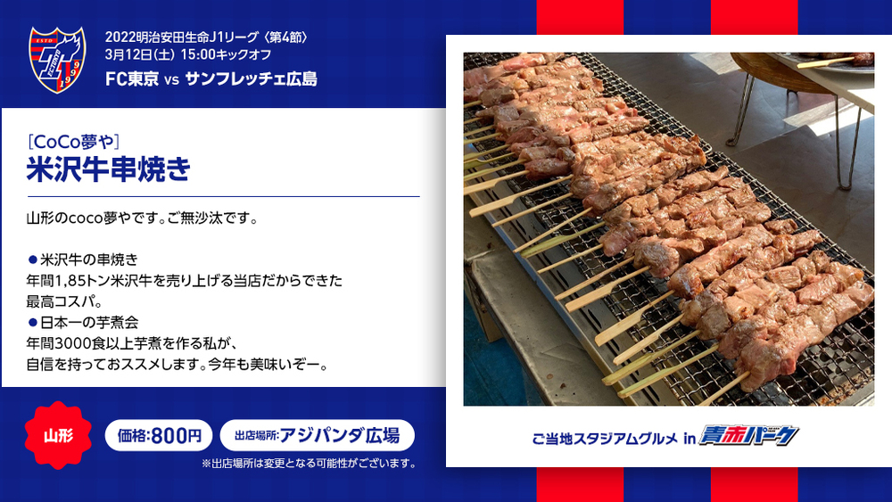 "We will hold the 'Local Stadium Gourmet in AO-AKA PARK' at the Sanfrecce Hiroshima game on March 12th (Sat)!"