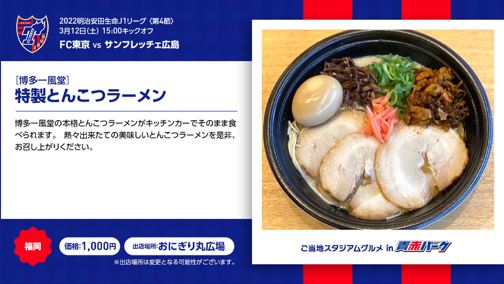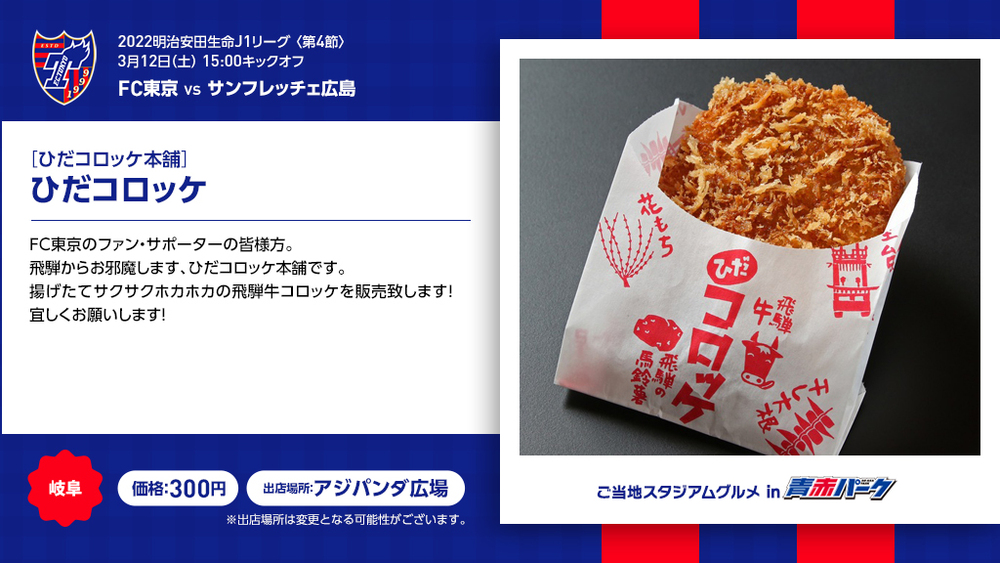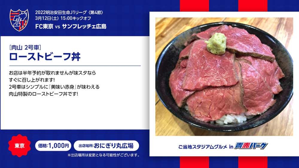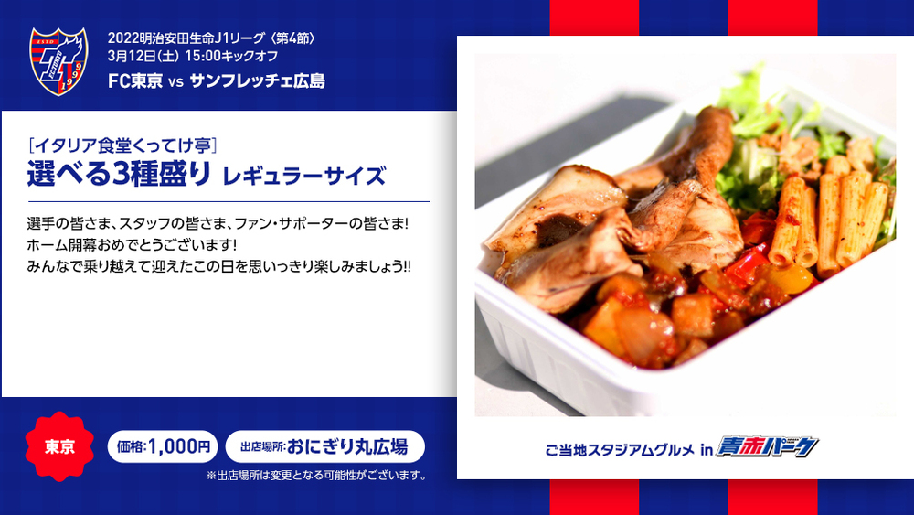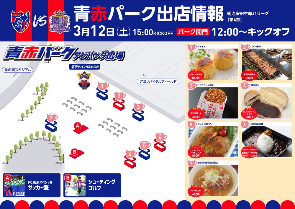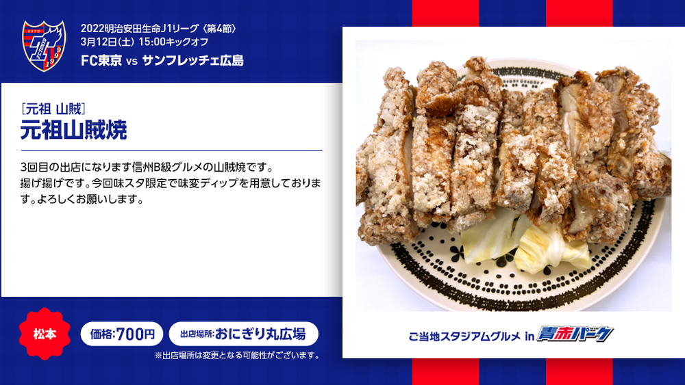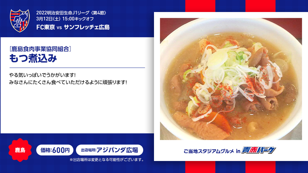 "We will hold the 'Local Stadium Gourmet in AO-AKA PARK' at the Sanfrecce Hiroshima game on March 12th (Sat)!"
