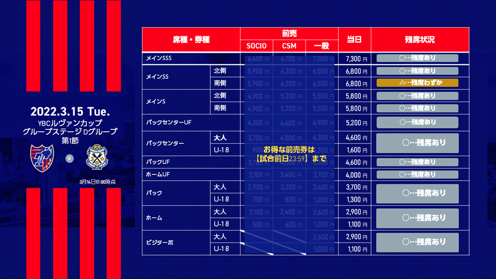 Tickets will only be sold at FC Tokyo (J-League Ticket).