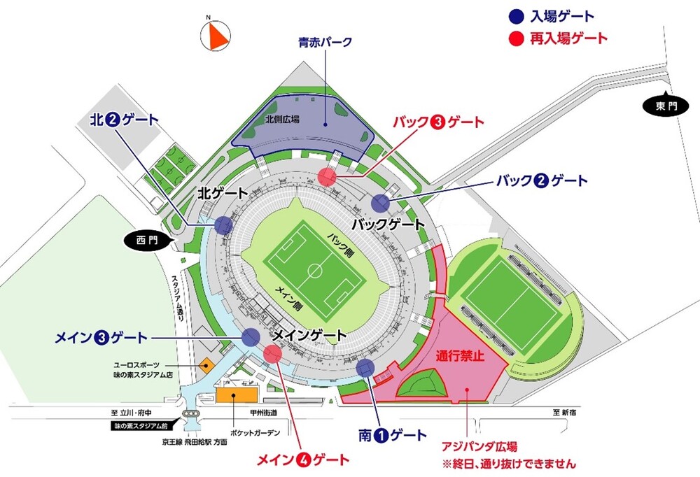 ・There is no public parking at Ajinomoto Stadium, so please use public transportation.