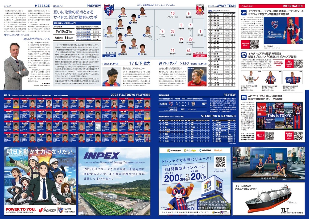 Regarding the official matchday program for the 8th round of the 2022 Meiji Yasuda J1 League against Urawa Reds on April 10 (Sun) (kickoff at 14:00 at Ajinomoto Stadium), we would like to provide the following information.