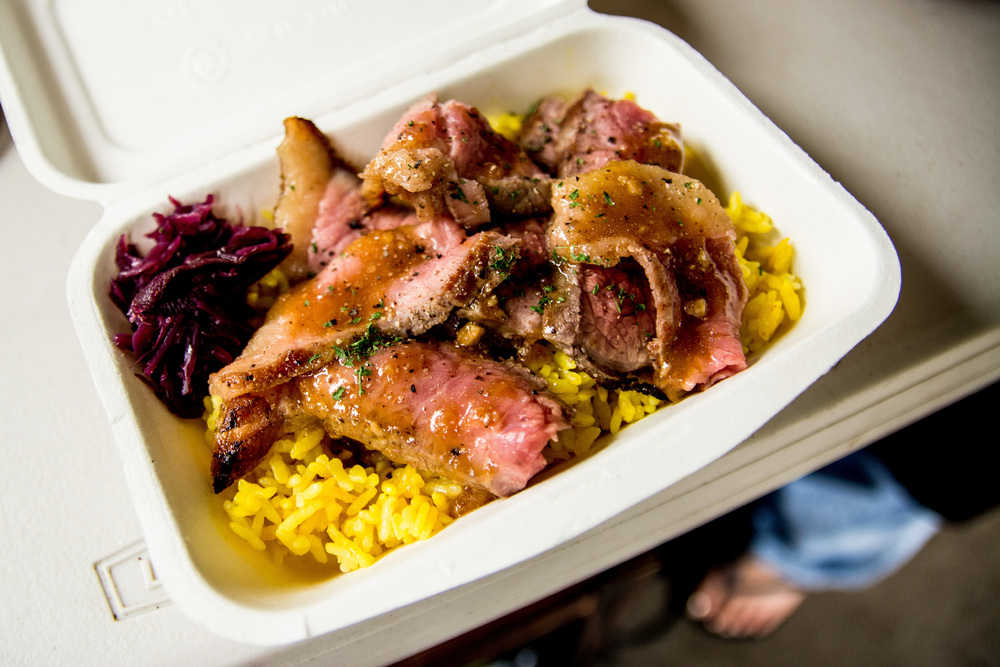 ・Chicken Kebab Bowl (Turmeric Rice & Kebab, Salad, 1 Drink) 750 yen