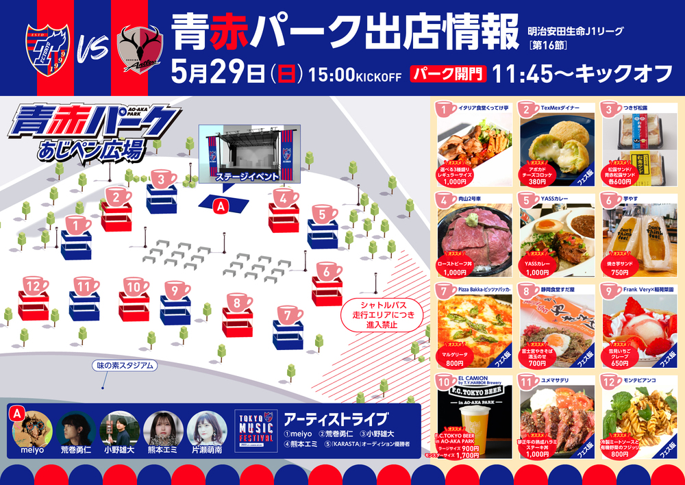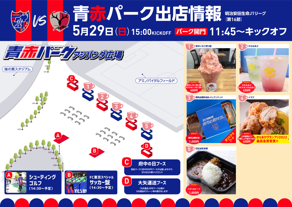 We will hold "AO-AKA PARK" on May 29 (Sun), 2022, in the 16th match of the Meiji Yasuda J1 League against Kashima Antlers (kickoff at 15:00/ Ajinomoto Stadium)!