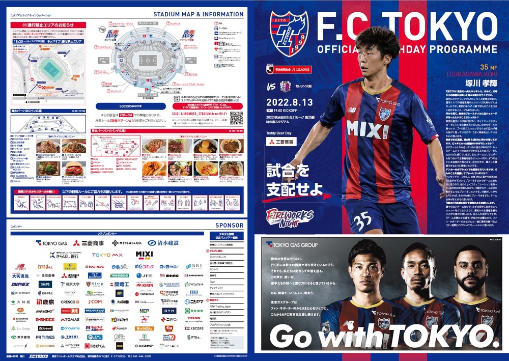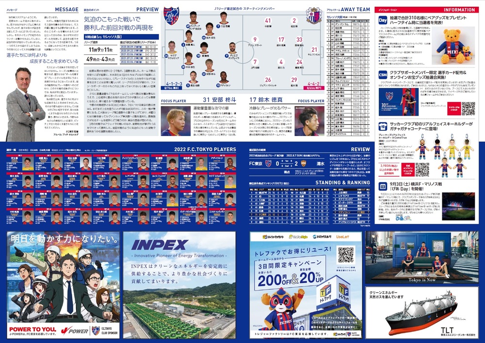 Regarding the official matchday program for the Meiji Yasuda J1 League Sec. 25 match against Cerezo Osaka on August 13, 2022 (Sat) (kickoff at 19:00 at Ajinomoto Stadium), we would like to provide the following information.
