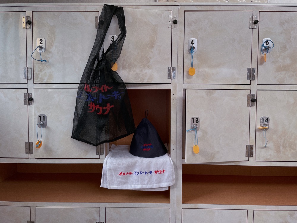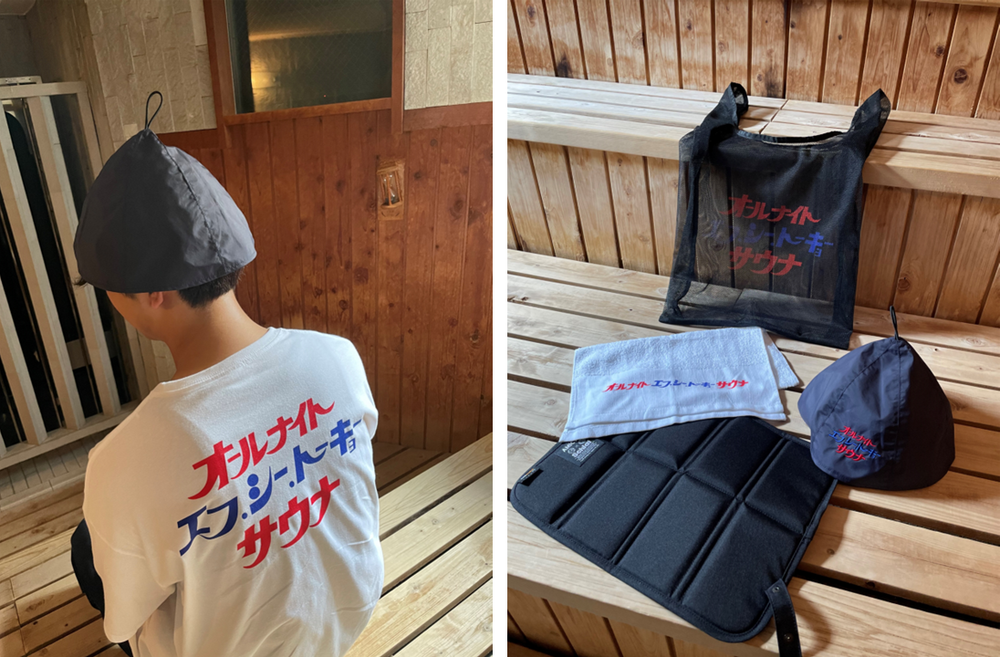 The collaboration products include a sauna hat and sauna mat with the club name sandwiched between the words "All Night Sauna", which is a staple design of Saubenia, as well as T-shirts and long T-shirts with illustrations of Tokyo Dorompa enjoying the sauna specially drawn for this occasion, creating a special lineup.